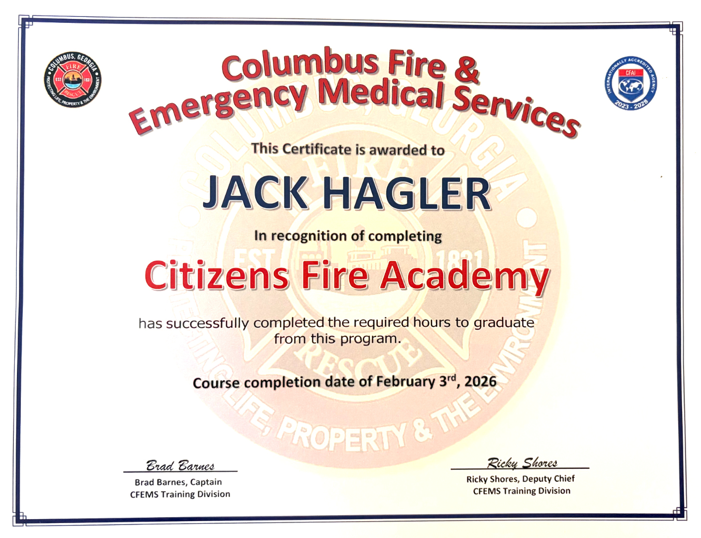 - Citizens Fire Academy [View Certificate]